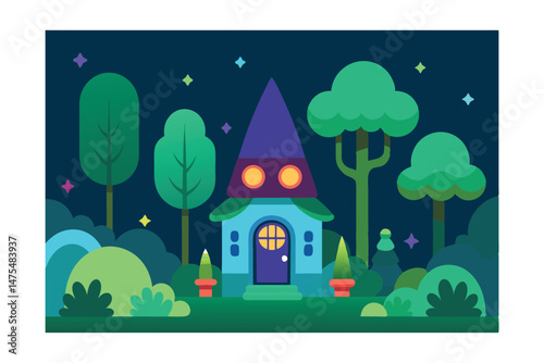 Naklejka premium Magic Tiny House of Gnome or Elf in Forest with Greenery