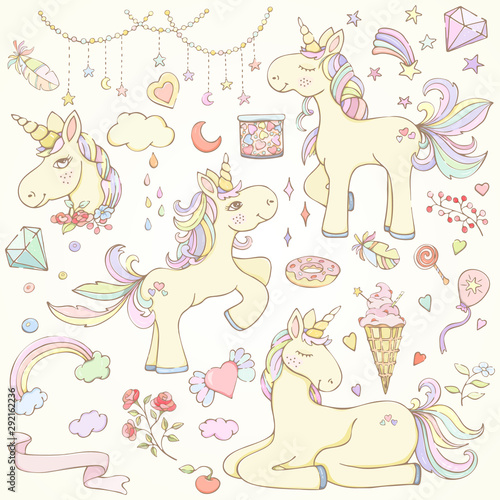 Fototapeta premium Magic unicorns elements set