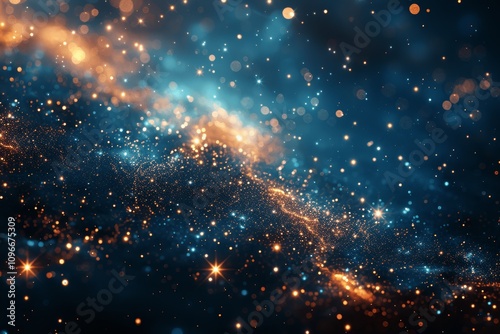 Obraz premium Magical Abstract Blue Green Background with Gold Glitters and Sparkles