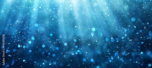 © Ilja, Fototapeta premium Magical asymmetric blue light burst on dark blue background with cyan and gold sparkles