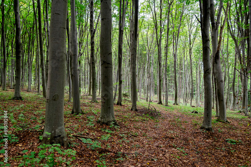 Obraz premium Magical beech forest. Summer or autumn. Selective focus