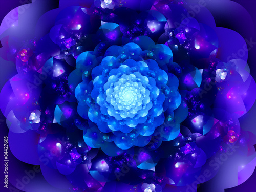 © sakkmesterke, Fototapeta premium Magical blue glowing space mandala
