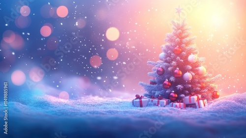 Obraz premium Magical Christmas tree in snowy scene with gifts.