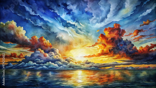 © Lidiya, Naklejka premium Magical colorful clouds at sunset with a captivating atmosphere