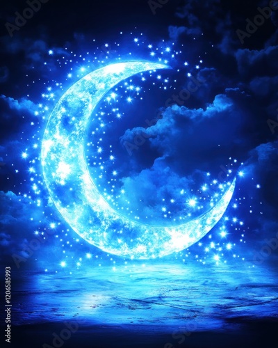 © Santri, Fototapeta premium Magical Crescent Moon Shining Brightly in a Dark Night Sky