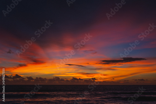 © Evgenii Starkov, Fototapeta premium Magical dramatic sunset on a tropical beach.