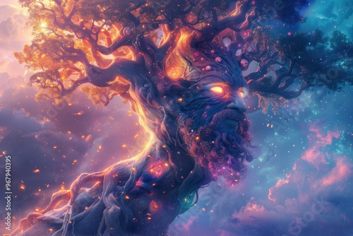 © nik_yurginson, Obraz premium Magical enchanted tree of life with glowing roots in a mystical twilight setting