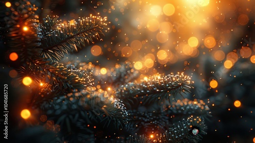 Naklejka premium Magical Evening Lights on Evergreen Branches