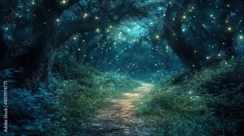 Obraz premium Magical fantasy fairy tale scenery, night in a forest