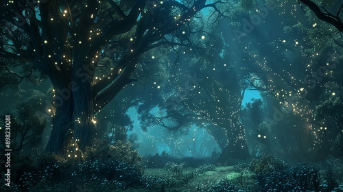 Obraz premium Magical fantasy fairy tale scenery, night in a forest