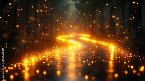 © Nizar, Naklejka premium Magical Forest Path Illuminated By Glowing Lights