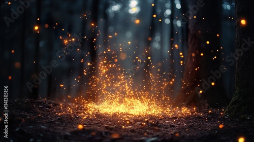 © Infinity, Naklejka premium Magical Forest Sparkle: Enchanting Night Landscape