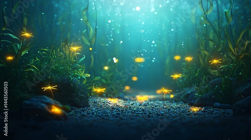 Fototapeta premium Magical forest with glowing lights creating a mesmerizing twilight scene filled with wonder and beauty in a subaquatic setting