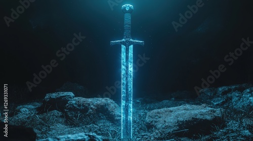 © Amporn, Fototapeta premium Magical Glowing Sword in Cinematic Atmosphere with Ethereal Lighting Effects