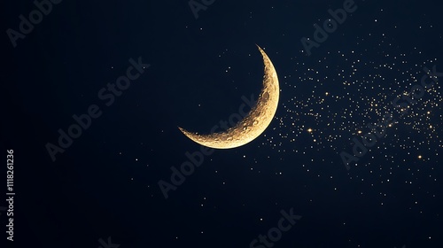 Fototapeta premium Magical golden crescent moon surrounded by sparkling stars and shimmering dust