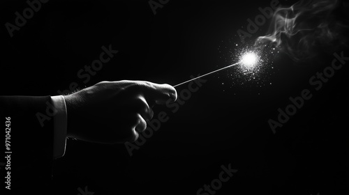 Naklejka premium Magical hand performing illusion with wand in high contrast scene