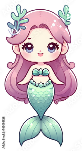 © julimur, Fototapeta premium Magical Mermaid Sticker. Adorable Mermaid Illustration