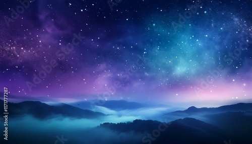 Fototapeta premium Magical night sky over misty mountains. Serene purple and blue hues.