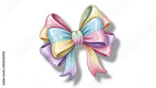 © Irt, Naklejka premium Magical Pastel Colored Glossy Bow With Delicate Sparkle and Sheen Isolated on White