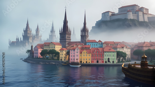 © Thiago, Obraz premium Magical Port City with Generative AI