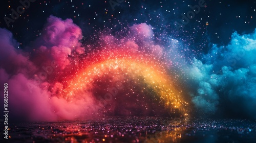 Naklejka premium Magical Rainbow in Galaxy Clouds