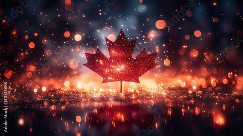 © Alexey, Fototapeta premium Magical Reflection of Fireworks in Water Celebrating Canadian Unity. Generative AI