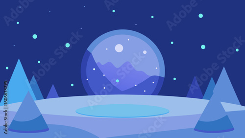 Fototapeta premium Magical snowfall scene glowing particles