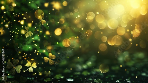 © Erni, Obraz premium Magical St. Patrick's Day Background: Golden Shamrocks and Sparkling Lights
