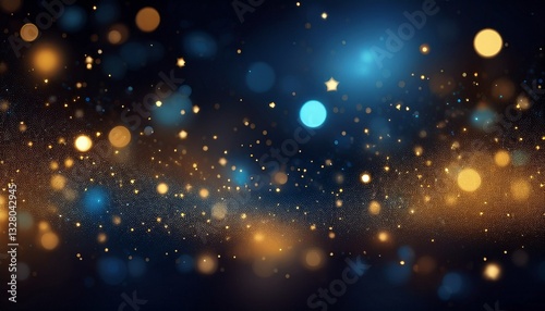 © Stanislava, Obraz premium Magical starry bokeh overlay with tiny golden and blue dots. Blurred bokeh star lights background