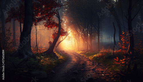 © Rudsaphon, Fototapeta premium Magical Sunlit Forest .Generative AI