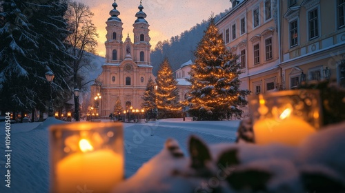 Fototapeta premium Magical Town Christmas Tree Lighting Warm Candlelight