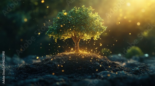 © arisa, Naklejka premium magical tree of life growing in darkness