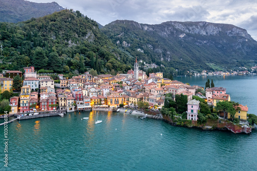 © afinocchiaro, Fototapeta premium Magical Twilight Over Varenna Village on Lake Como