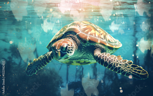 © Mahendra, Fototapeta premium Magical Underwater Sea Turtle and Marine Tribe Native Life