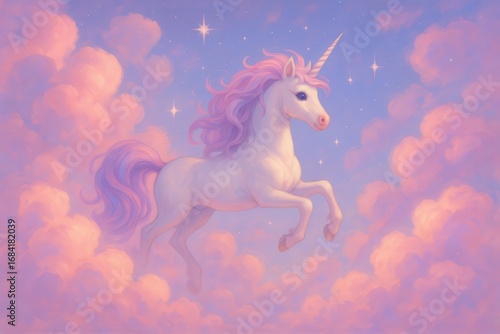 Fototapeta premium Magical unicorn-themed sky with cotton candy clouds in pastel pink and lavender hues