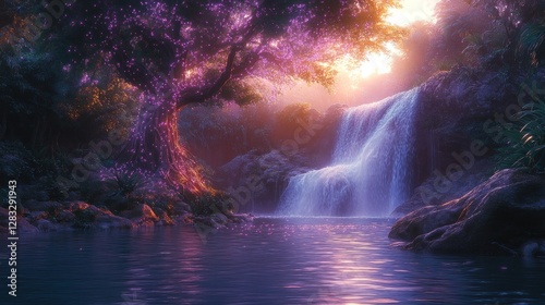 © TITISCAHYA, Naklejka premium Magical Waterfall Sunrise Forest
