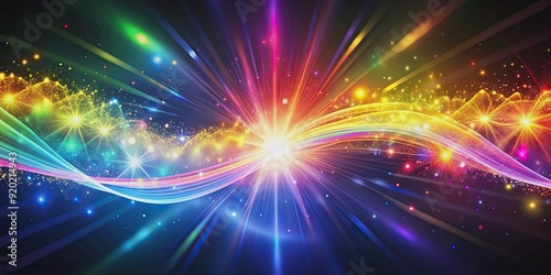 Fototapeta premium Magical waves of bright energy with high tech rainbow light ray particles and bokeh energy, magical, waves, bright