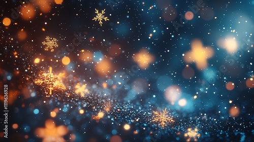 © Галя Дорожинська, Obraz premium Magical winter background filled with sparkling snowflakes at night. Generative AI