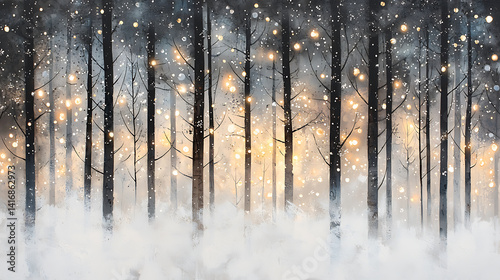 Fototapeta premium Magical Winter Forest with Glowing Lights and Snowfall