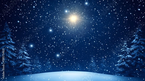 Naklejka premium Magical Winter Night Snowfall Starry Sky Trees
