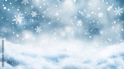 © Nathan, Fototapeta premium Magical winter scene with falling snowflakes creating a tranquil atmosphere.
