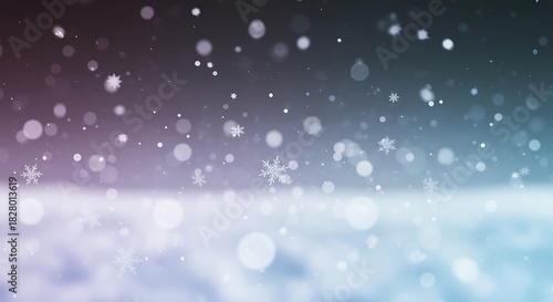 Fototapeta premium Magical winter snowfall with falling snowflakes and bokeh lights background