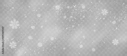 Obraz premium Magical Winter Snowflakes: Transparent Backgrounds and Snowstorm Scenery for January and February Themes