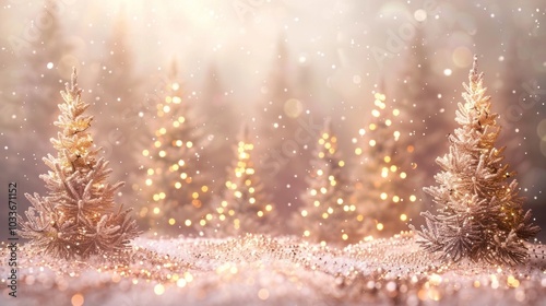 © Waraporn, Naklejka premium Magical winter wonderland scene with glittering Christmas trees sparkling snow and a warm cozy atmosphere This enchanting landscape evokes the festive spirit of the holiday season