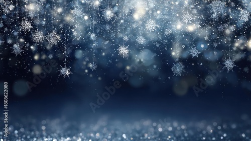 Obraz premium Magical winter wonderland with falling snowflakes and sparkling bokeh lights...