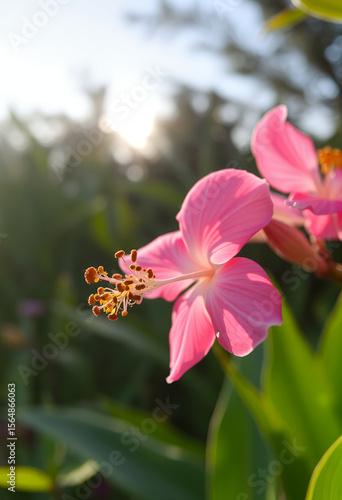 © Valistrum, Fototapeta premium Magische Natur – Rosa Blüte im Traumlicht mit Wasserperlen