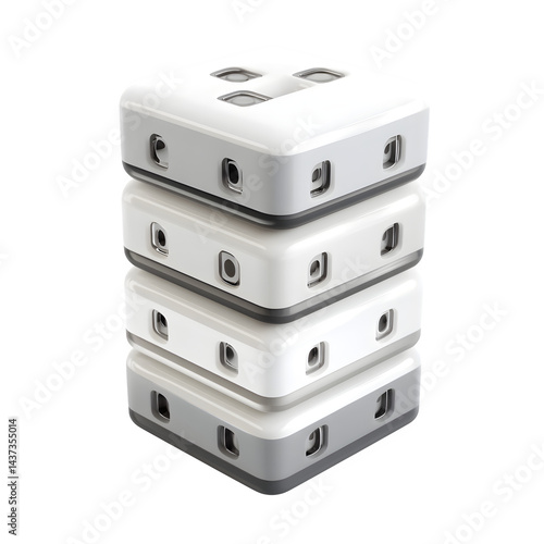 © Majestic Frames, Fototapeta premium Magnetic stackable smart power bricks isolated on clean white background.