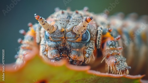 © iva21, Fototapeta premium Magnificent Close-Up of a Unique Horned Caterpillar on a Leaf, Detailed Macro Photography of Insect
