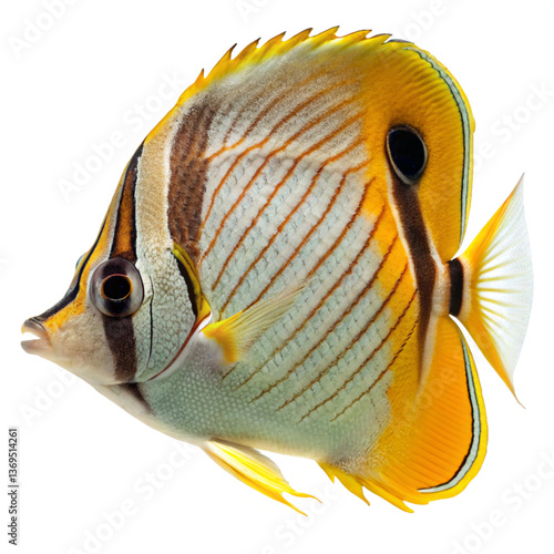 Naklejka premium Magnificent Closeup of a Masked Butterflyfish Showing Intricate Details of its Coloration and Body Shape
