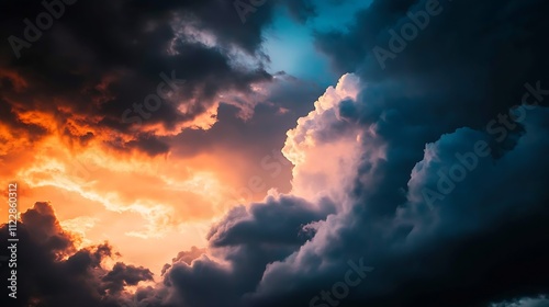 Obraz premium Magnificent Cloudscape with Deep Blue and Fiery Orange Glow During Magical...